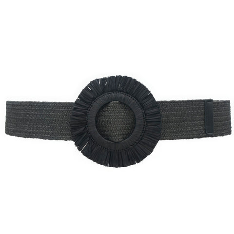 Introducing our Fringe Circle Straw Belt, available in four stylish colors: Cognac, Black, Red, and Natural. This belt features a unique design with fringe detailing and a circular straw buckle, combining bohemian charm with contemporary style.