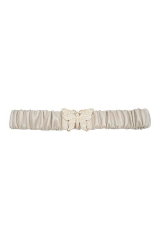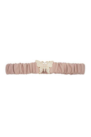 Rhinestone Pave Butterfly Ruched Elastic Back Belt