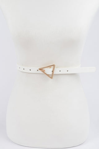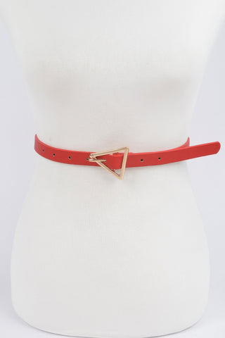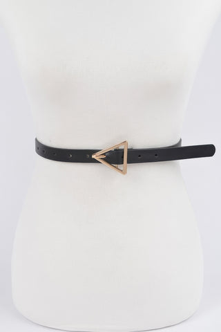 Product Description: Sleek and modern, the Triangle Buckle Belt is a refined accessory designed to enhance your silhouette with minimalist edge. Crafted from smooth polyurethane, this waist belt features a bold triangle-shaped buckle that adds architectural flair to any look. Measuring 0.75" in width and 43" in length, it offers a flattering, versatile fit that pairs effortlessly with dresses, skirts, or high-rise trousers. Perfect for the woman who values both style and structure, this belt is a sophisticated staple with a statement twist.