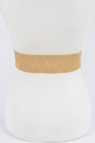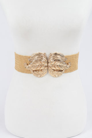 Product Description: The Golden Leaf Metal Belt blends natural texture with elevated detailing for a standout accessory that flatters the waist. Crafted from a flexible mix of 70% PVC and 30% elastic, this stretch straw belt offers comfort and a secure fit. The highlight is a luxe gold metal buckle shaped like a leaf—bringing a touch of organic elegance to the structured design. With a 2.25-inch width and nearly 29-inch length, it effortlessly defines the silhouette while adding a hint of shine. Pair it with flowy dresses, linen sets, or high-rise skirts for a chic, nature-inspired finish.