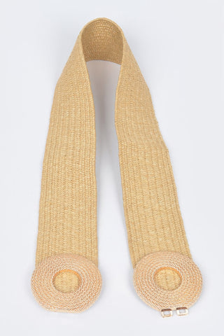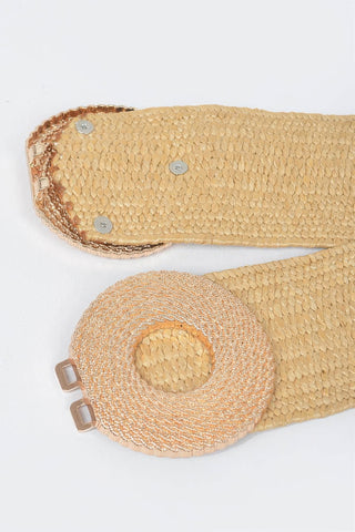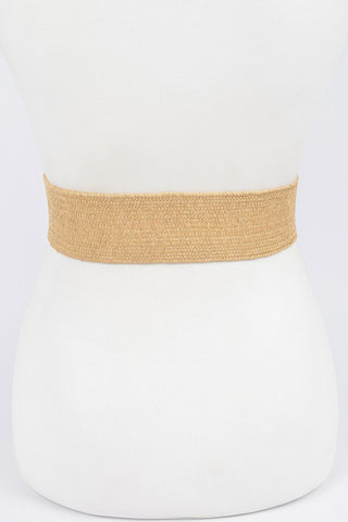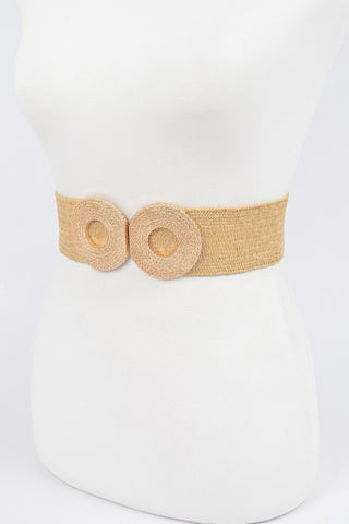 Faux Straw Elastic Two Buckles Belt - Beige / One Size Fits Most