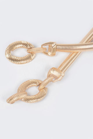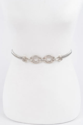 Product Description: Add a sleek accent to your wardrobe with this Metal Stretch Belt, designed for both style and comfort. Crafted from iron, it features a sequence of finely textured, linked metal pieces that create a refined, elegant look. The stretchable construction offers a flexible, snug fit, making it a go-to accessory for a range of silhouettes. Whether you're dressing up a blouse, defining the waist of a dress, or adding polish to high-waisted pants, this belt delivers understated sophistication. Its slim profile makes it easy to incorporate into everyday or dressy ensembles.