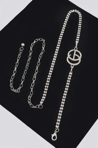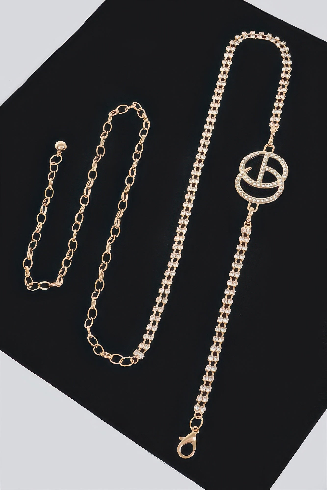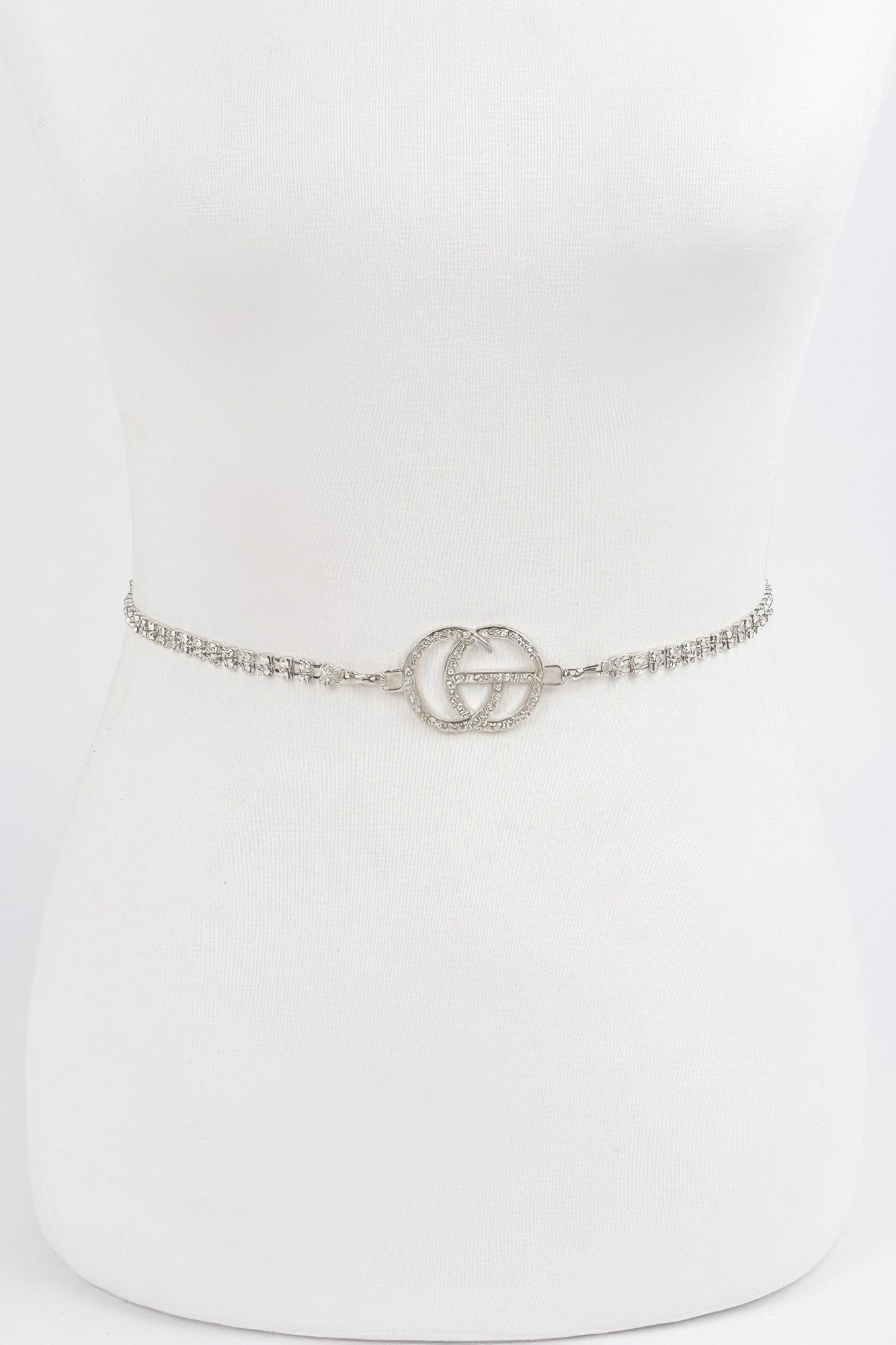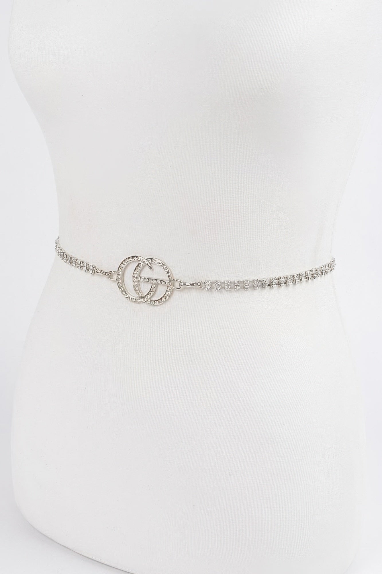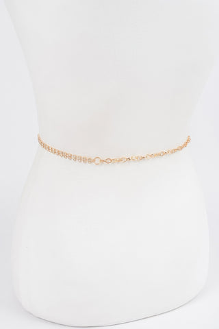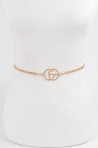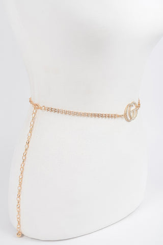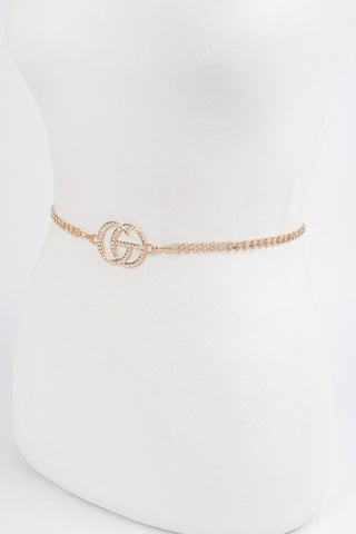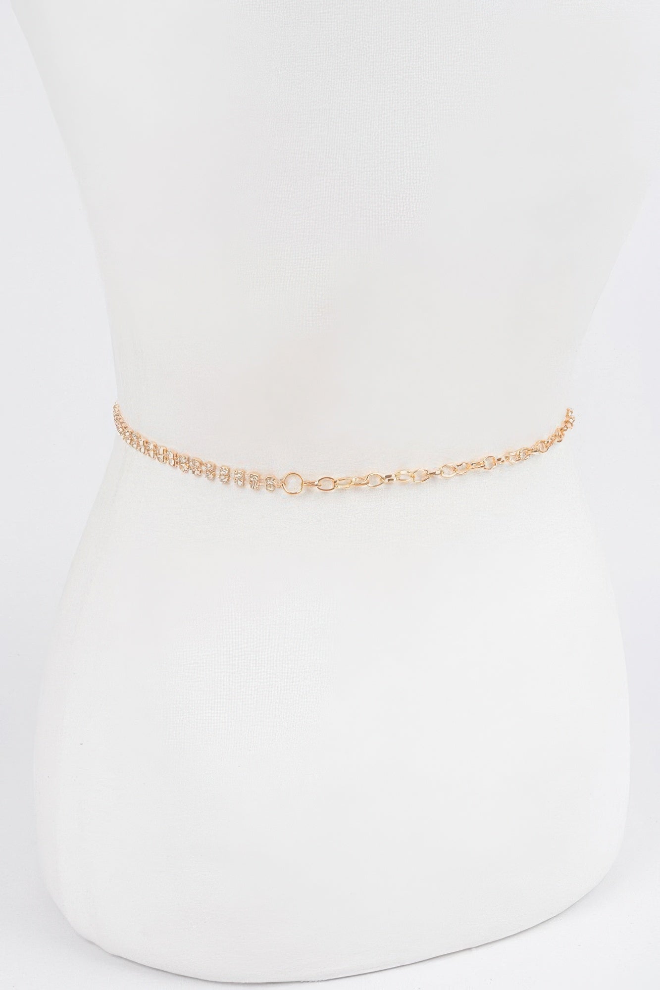 Rhinestone Metal Chain Belt - Gold / One Size Fits Most