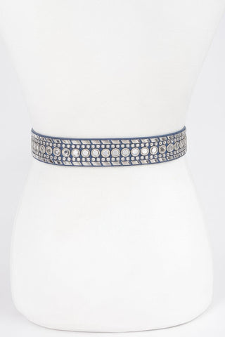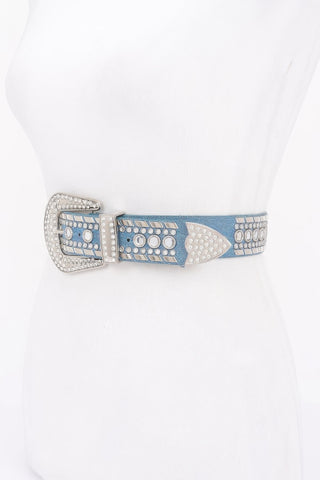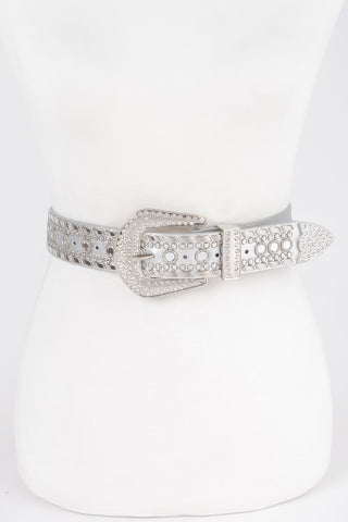 Rhinestone Metal Studded Multi Metal Belt - Silver / One Size Fits Most