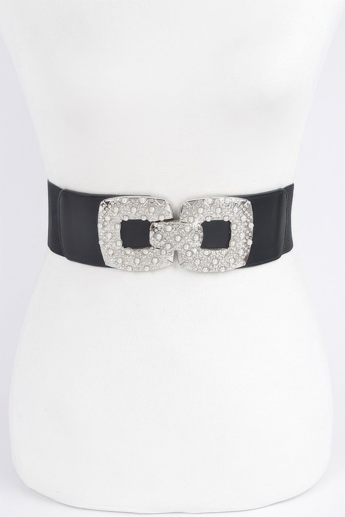 Product Description: Add a refined finishing touch to your look with the Rhinestone Pearl Buckles Elastic Belt. Designed to blend elegance with versatility, this belt features a sparkling faux pearl and rhinestone buckle that instantly elevates any outfit. The wide elastic band ensures a secure, comfortable fit while accentuating the waist for a flattering silhouette. Whether styled with dresses, blouses, or outerwear, this statement accessory delivers timeless charm and effortless polish.