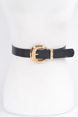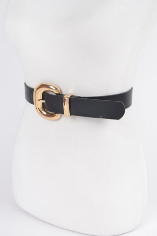 Faux Leather Metal Buckle Belt - Black Gold / One Size Fits Most