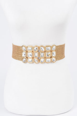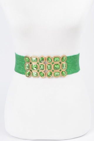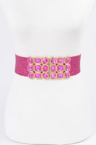 Product Description: Elevate your ensemble with the Multi Stone Metallic Straw Stretch Belt, a luxurious blend of texture and sparkle. Featuring a woven metallic straw design adorned with glimmering rhinestone embellishments, this belt adds an instant touch of sophistication to any look. The elastic construction ensures a comfortable, flattering fit, making it as practical as it is stylish. Whether worn with a flowing dress or a tailored outfit, this belt brings statement-making elegance to both casual and formal occasions.
