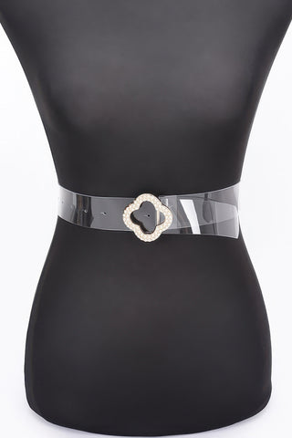 Design: The belt features a stunning pearl metal buckle that adds an elegant and fashionable contrast to the clear PVC material.