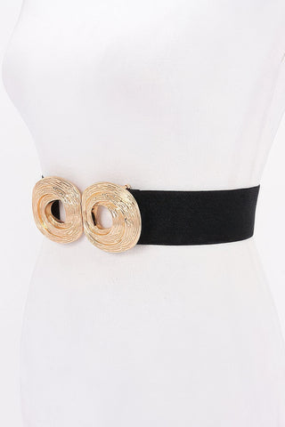 This belt combines the flexibility of elastic with the sleekness of a metal buckle, offering a stylish solution for adding definition to your waist. Available in a variety of color combinations, it easily complements a wide range of outfits and adds a chic touch to any look.