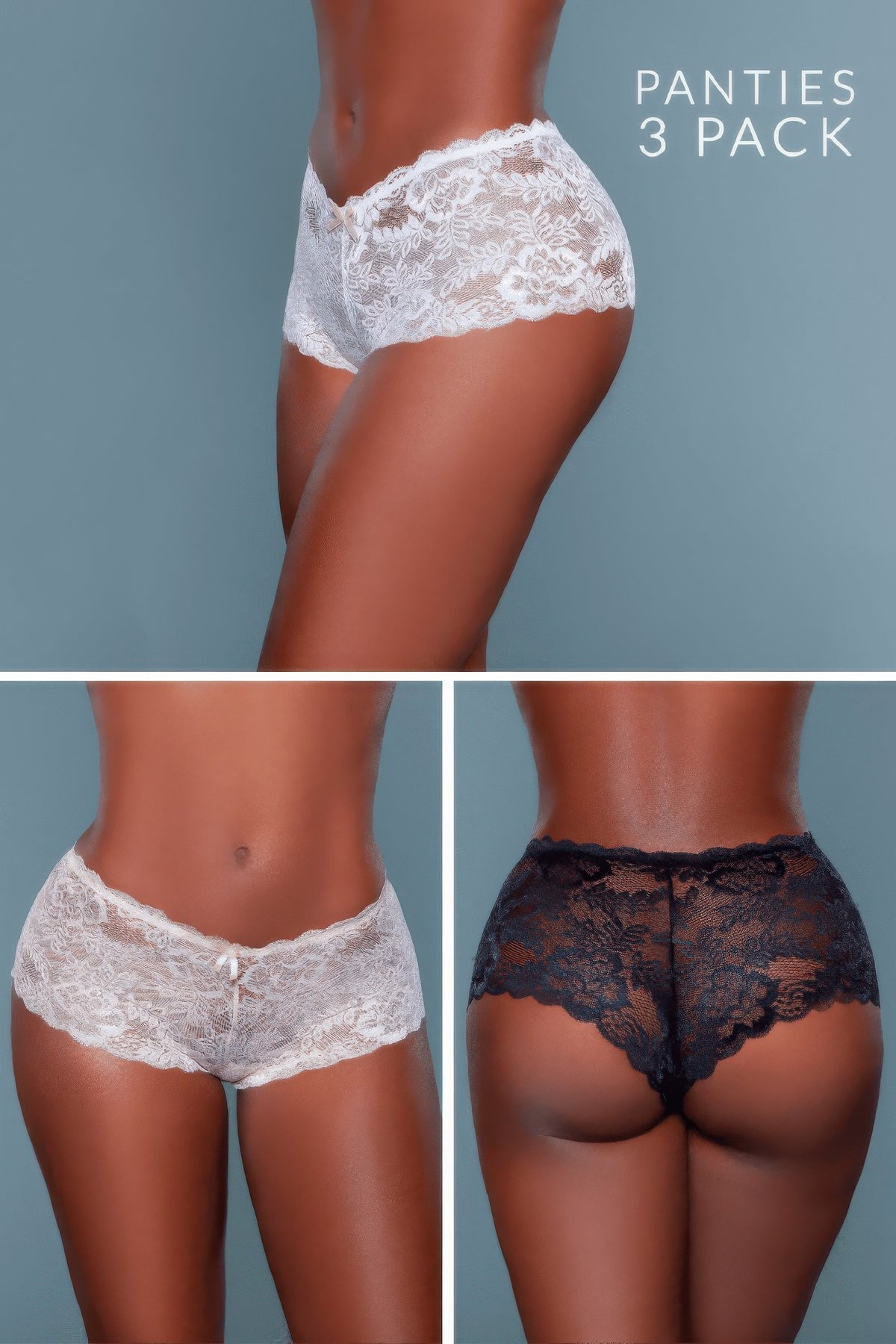 Product Description: Upgrade your lingerie drawer with the Hayden Boyshort 3-Pack—where classic charm meets modern comfort. Designed with a flattering high-rise silhouette, these lace boyshorts offer full coverage while maintaining a feminine, delicate look. The allover lace design adds a touch of elegance, and the dainty front bow detail finishes each pair with sweet sophistication. With a breathable cotton gusset for all-day wearability, these boyshorts are as practical as they are pretty. Perfect for everyday comfort with a refined edge, this 3-pack includes one of each color to mix up your weekly rotation.