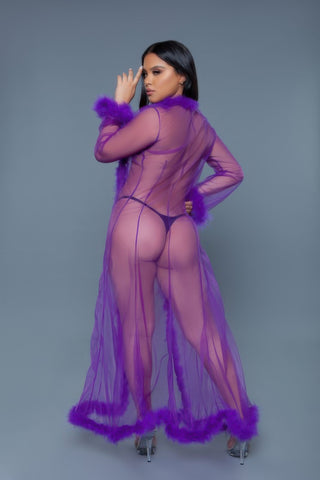 Product Description: Elevate your loungewear with the Marabou Robe, a full-length statement piece that exudes glamour and sophistication. Crafted from sheer, lightweight mesh, this robe floats gracefully over the body, offering an ethereal feel. The luxurious faux fur trim along the hem and cuffs adds a dramatic, vintage-inspired finish, while long sleeves and a satin ribbon tie at the front provide structure and softness. Whether layered over lingerie or worn on its own for a dramatic reveal, the Marabou Robe is a chic essential for those who adore a touch of luxury.