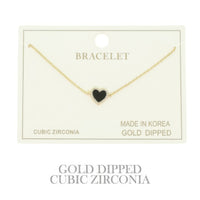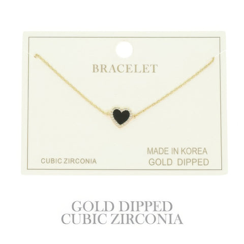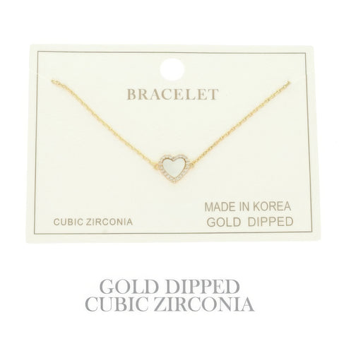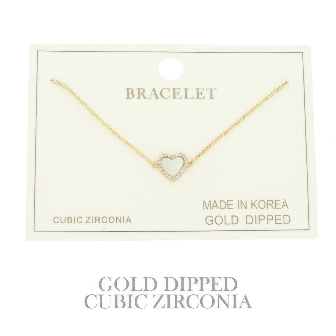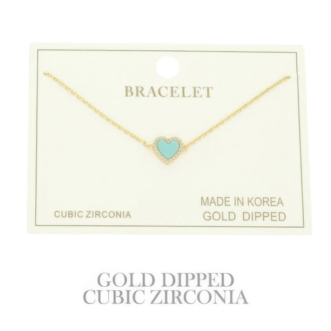 Product Description: Celebrate love and connection with this gold-plated heart chain bracelet, featuring a dainty heart charm with enamel inlay and cubic zirconia sparkle. Whether worn alone or stacked, it adds a soft yet elegant accent to your wrist. The slim profile and lightweight feel ensure comfort throughout the day. With its adjustable fit and secure clasp, this bracelet is a sweet gift for daughters, friends, or bridesmaids. Available in yellow or white gold, it blends charm with everyday versatility.