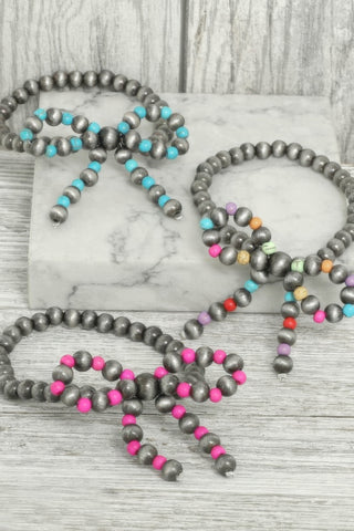 Product Description: Sweet and stylish, the Western Bow Beaded Stretch Bracelet adds a feminine flair to your everyday wristwear. Featuring a charming center bow accent in various colors, this beaded stretch bracelet is lightweight, easy to slip on, and perfect for day-to-night outfits. Whether worn solo or stacked, it’s a pretty pick for teens, bridesmaids, or boutique shoppers.
