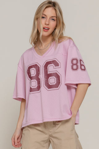 Product Description: Sporty meets street-ready in this oversized mesh baseball t-shirt, designed with bold silk screen printing for standout appeal. The breathable mesh fabric delivers lightweight comfort, while the relaxed fit adds a laid-back edge to your look. Classic short sleeves and a crew neckline keep it timeless, while the oversized silhouette makes it ideal for layering or wearing as a statement piece. Whether paired with joggers, shorts, or styled over a fitted dress, this top brings effortless energy to your off-duty wardrobe.