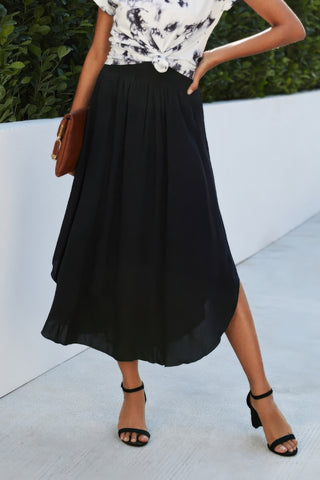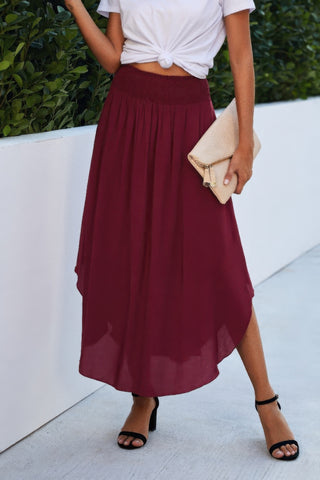 Product Description: Flowy and feminine, this flared skirt features a shirred waist and asymmetrical hem for a playful, eye-catching silhouette. Crafted from 100% polyester, it offers a lightweight, breezy feel that moves beautifully with every step. The shirred waist provides flexible comfort and a flattering fit, while the asymmetrical hem adds a modern twist. Whether you're heading out for a weekend stroll, vacation day, or casual get-together, this skirt delivers effortless style with standout detail.
