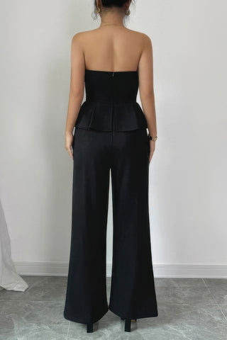 Off Shoulder Back Hide Zipper Pleated Fit Jumpsuit - Black / S