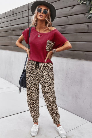 Product Description: Bold and effortlessly coordinated, this two-piece leopard print set features a matching shirt and pant combo for standout style with minimal effort. Made from a comfortable blend of polyester and spandex, it offers soft stretch and a smooth fit that's perfect for all-day wear. The shirt features a relaxed cut, while the pants deliver an easy, flattering silhouette that moves with you. Whether you're headed on vacation or stepping out for a casual day, this set combines fashion-forward flair with everyday comfort.