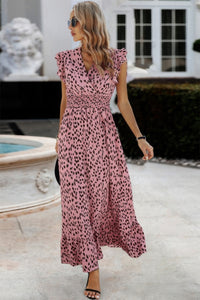 Sleeveless Tie Waist Surplice Wrap Leopard Dress Sale