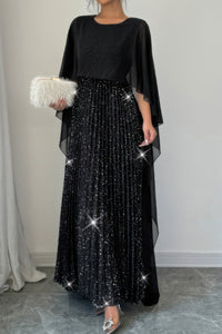 Solid Elegant Sequin Satin Knit Party Long Dress - Black / S