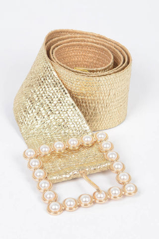 Wide Pearl Buckle Elastic Belt Sale