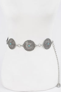 This belt stands out with its antique silver finish and eye-catching chain design, bringing western charm and sophistication to your outfit. Whether dressing up or down, this belt adds personality and style to your look.