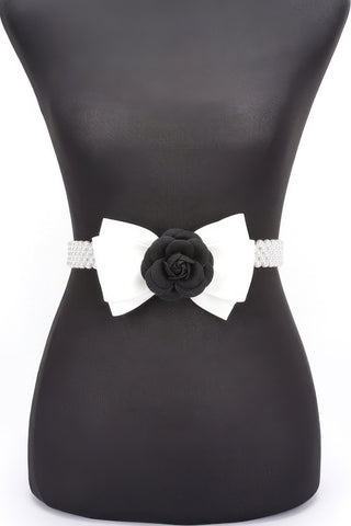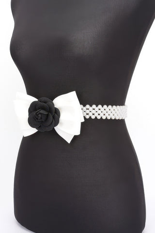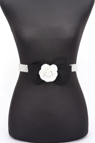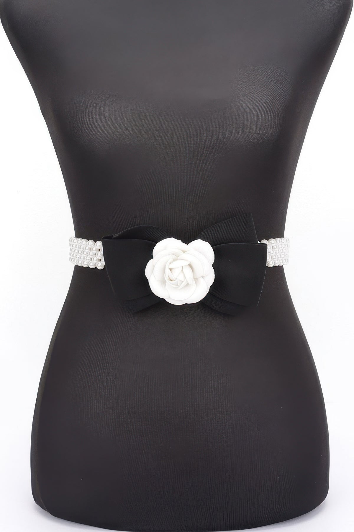 Product Description: Add a graceful finishing touch to your look with the Flower Ribbon Faux Pearl Stretch Belt. Designed with a delicate floral ribbon centerpiece and accented by lustrous faux pearls, this belt effortlessly combines charm and sophistication. Crafted from durable PVC with a comfortable stretch fit, it measures approximately 1.25" in width and 28" in length for a flattering silhouette. Whether cinching the waist of a dress or adding detail to a blouse, this elegant accessory brings a refined sparkle to any ensemble. Perfect for weddings, special occasions, or elevating everyday style.