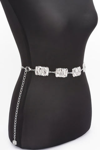 Add a bold and edgy touch to your wardrobe with the Hammered Metal Chain Belt. Designed to offer a contemporary, industrial look, this belt is perfect for adding a statement piece to any outfit, whether it's casual or dressy.