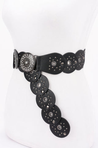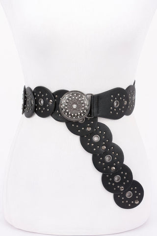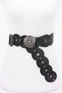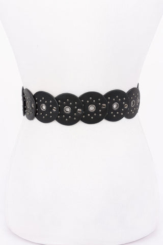Add the Multi Metal Round PU Vintage Belt to your collection today and make a bold statement with this chic and versatile accessory!