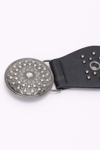 Design: Features a unique multi-metal round buckle that adds a bold, vintage-inspired touch to any outfit