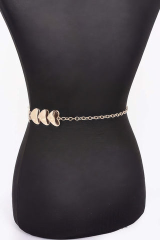Design: The metal chain design is adorned with heart-shaped charms, adding a whimsical yet chic element to the belt. The combination of the chain and charms creates a striking contrast, making this accessory a statement piece.