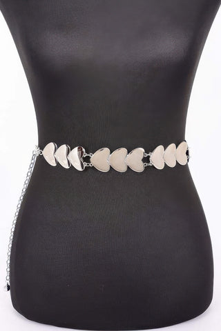 This belt offers the perfect combination of romance and edge. Its unique heart-shaped charms add a fun, playful element to your wardrobe while the metal chain design brings a touch of sophistication. It's the perfect accessory to express your love for fashion in a chic way.