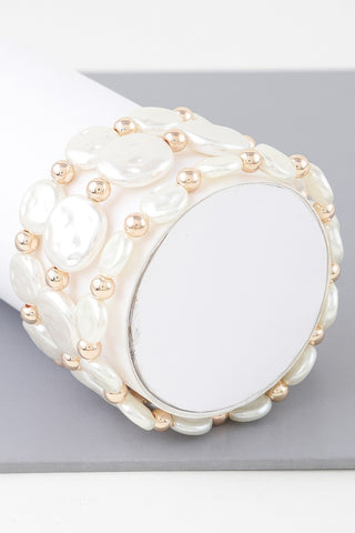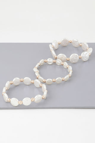 Triple Pearl Stone Beaded Bracelet - Gold cream