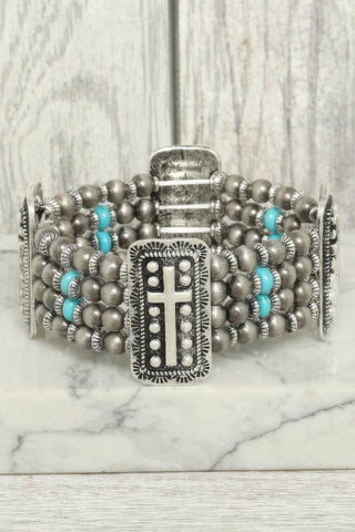 Western Rectangle Cross Concho Stretch Bracelet - Turquoise