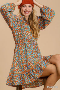 Collared neckline button down floral print dress with crochet trimmed details Sale