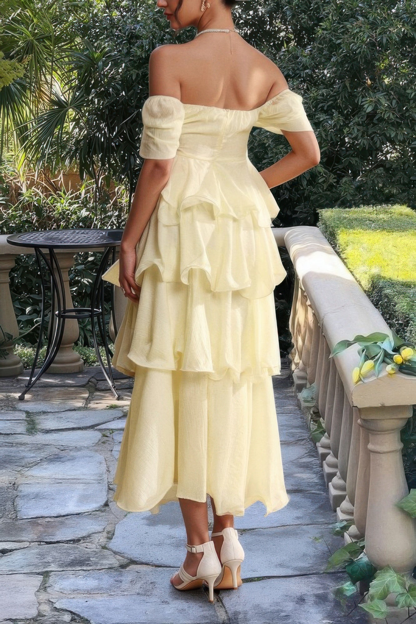 Product Description: Feminine and effortlessly chic, this off-shoulder puff short sleeves tiered dress is the perfect choice for warm-weather days and casual outings. Made from a soft and breathable blend of 85% lyocell and 15% polyamide, this dress offers lightweight comfort with a graceful drape. The off-shoulder design paired with charming puff sleeves creates a romantic silhouette, while the tiered skirt adds playful movement and flow. Ideal for vacations, weekend brunches, or outdoor events, this dress brings a fresh, stylish touch to any casual occasion.