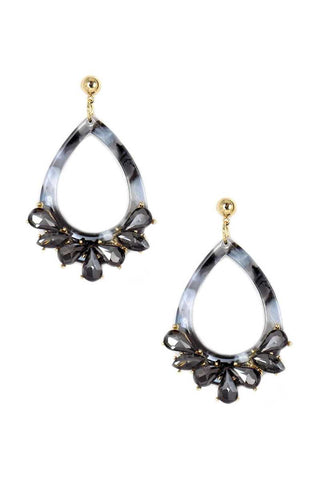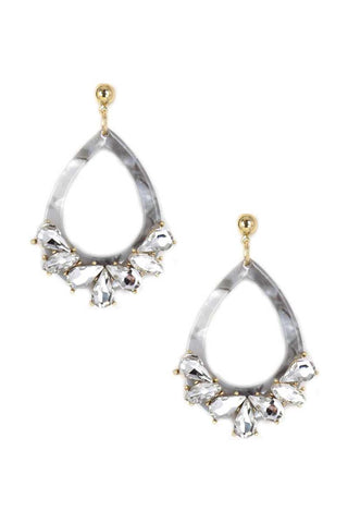Acetate Rhinestone Teardrop Dangle Earring - Grey