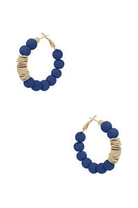 Make a fashion statement with our "Clay Ball with Metal Accent Hoop Earring" in the captivating combination of Navy, White, Green, Mustard, Black, and Wine. Add them to your jewelry collection for a touch of contemporary elegance. Shop now for the perfect blend of style and individuality!