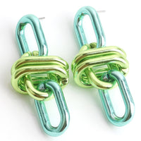 Elevate your style with the Color Metal Oval Link Earrings in Green, Pink, or Fuchsia. Add a playful and modern touch to your jewelry collection with these vibrant and chic accessories!