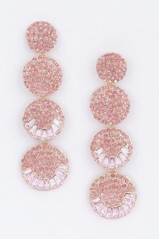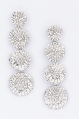 Product Description: Add a touch of brilliance to your look with the Radiant Circle Earrings—a stunning blend of elegance and shine. Measuring approximately 1" x 3.5", these striking earrings feature a bold circular design embellished with dazzling crystal stones that catch the light from every angle. Their elongated silhouette creates a graceful, eye-catching effect perfect for both formal occasions and elevated everyday wear. Lightweight yet statement-making, these earrings bring a refined sparkle to any ensemble.