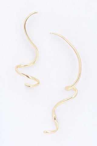 Product Description: Sculptural and refined, the Curvaceous Elegance Earrings bring a graceful twist to your jewelry collection. These gold-plated beauties feature fluid, curved lines that exude modern sophistication with a touch of drama. Measuring approximately 4" in length, they offer a striking silhouette while remaining lightweight for comfortable wear. Finished with gold-dipped sterling silver posts, they combine style and quality in one elevated design. Whether worn with sleek eveningwear or a minimalist daytime look, these earrings add a flowing, elegant statement to every ensemble.