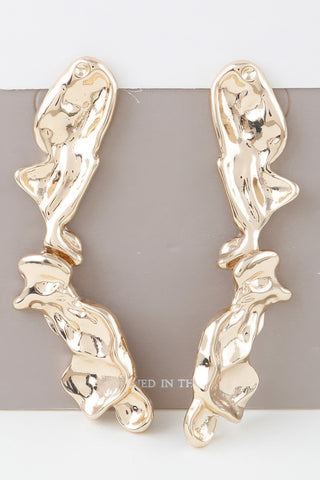Product Description: Add a touch of artistic elegance to your ensemble with the Shiny Abstract Ripple Earrings, a refined statement piece crafted to turn heads. These gold-plated earrings feature a fluid, abstract ripple design that captures light and movement with every step. The elongated silhouette adds drama and sophistication, making them a perfect choice for both formal occasions and everyday glamour. With their polished finish and modern edge, these earrings effortlessly blend timeless beauty with bold design. Lightweight and comfortable, they’re a must-have for those who love to stand out with style.