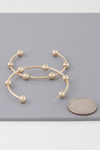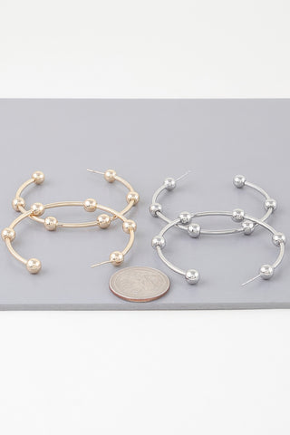Product Description: Radiate charm with the Multi Shiny Bead Hoop Earrings, designed to bring effortless elegance to your look. Measuring approximately 2" in diameter, these gold-tone hoops are adorned with multiple polished beads that shimmer with every movement. Their balanced blend of texture and shine offers a modern twist on a classic silhouette. Lightweight yet impactful, these earrings are ideal for dressing up daytime looks or complementing evening ensembles. With their versatile design and eye-catching sparkle, they’re a standout addition to any jewelry collection.