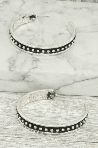 Product Description: Add bold Western flair to your look with the Western Bubble Hoop Earrings. Featuring a rigidized C-hoop design in oxidized silver-tone metal, these earrings combine vintage inspiration with modern edge. Lightweight and comfortable, they’re perfect for both daytime events and night-out looks.