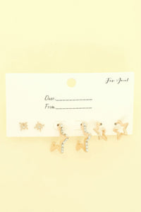 Product Description: The 3 Pair Jeweled Star Post Earring Set adds cosmic sparkle to your jewelry collection. Featuring three sizes of star designs embellished with rhinestones, this gold-tone set is perfect for creating celestial-inspired looks. Lightweight and versatile, these earrings can be worn solo or mixed and matched for a layered effect.