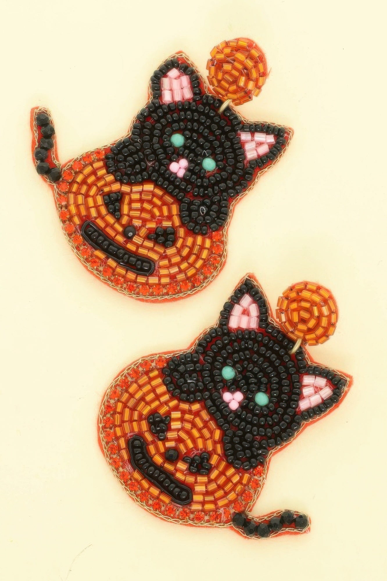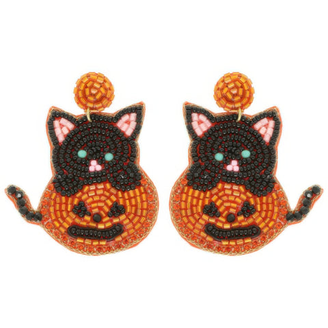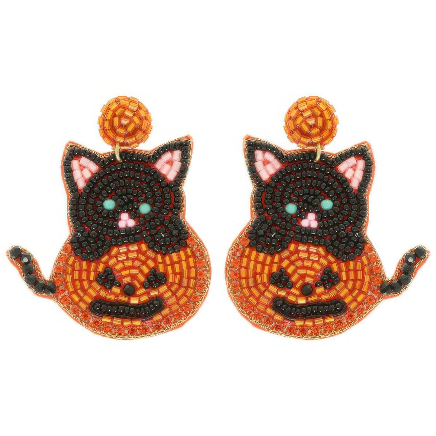 Product Description: Celebrate Halloween in style with these charming Jack O’ Lantern Kitty Beaded Earrings. Featuring a playful black cat perched atop a glittering pumpkin, each earring is crafted with intricate crystal seed beads for a dazzling seasonal look. The lightweight dangle design ensures comfortable wear, while secure post backings keep them in place throughout your festivities. Perfect for adding a touch of whimsy to your October wardrobe, these earrings are ideal for costume parties, trick-or-treating, or festive gatherings. Their vibrant colors and unique motif make them a standout accessory for Halloween lovers of all ages. Pair them with your favorite outfit to instantly embrace the spooky season spirit.