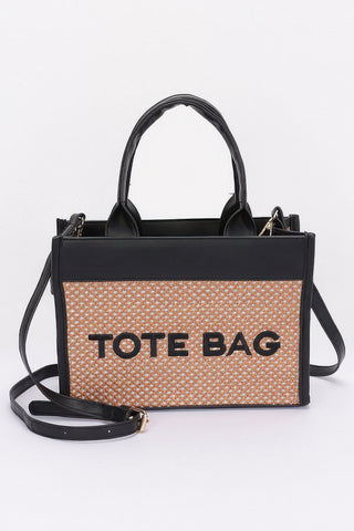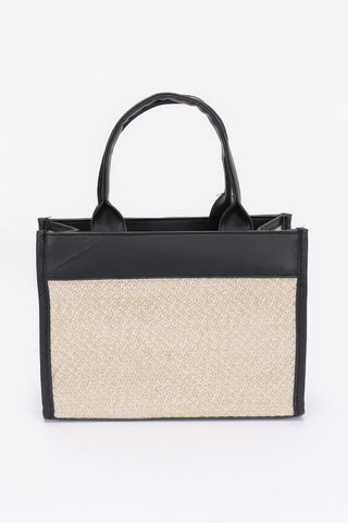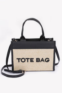 Product Description: Effortlessly stylish and refreshingly versatile, the Faux Straw Tote Bag is your go-to companion for warm-weather days and beyond. Designed with a woven faux straw texture and structured silhouette, this tote blends natural charm with modern polish. Measuring 10.5” wide by 7.25” high with a 3.5” depth, it offers ample space for daily essentials while maintaining a sleek profile. Crafted from polyurethane with mixed metal accents, it features a bold logo detail that adds a fashionable edge. Whether you're heading to the beach, running errands, or enjoying a day out, this tote delivers on both style and substance.