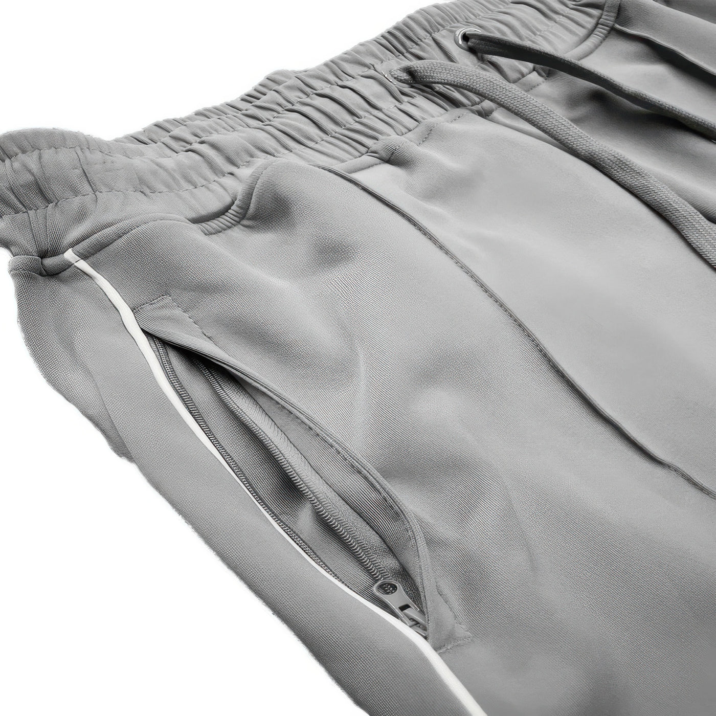 Design: Solid color with white side piping adds a clean, sporty detail. Two zippered pockets provide secure storage for your essentials, making these pants as functional as they are stylish.