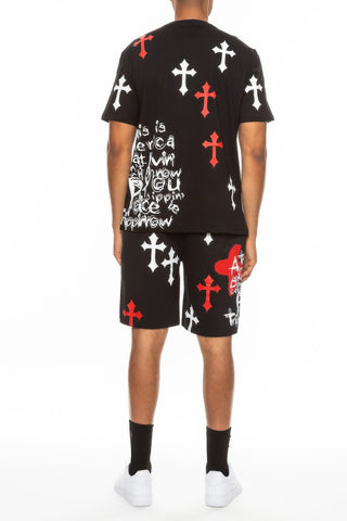 Get ready to look and feel your best with our Cotton Print Chrome Cross T-Shirt and Short Set. Add it to your cart now and enjoy the perfect combination of comfort and style!