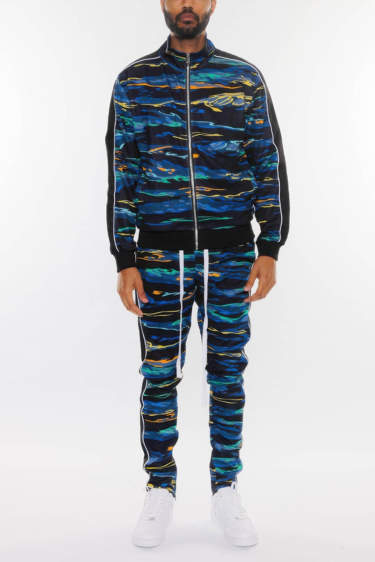 Elevate your athletic and casual wear with our Men's Print Full Zip Track Suit Set, designed for both performance and style. This sleek and comfortable track suit is perfect for workouts, casual outings, or lounging in style.
