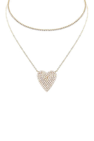 Rhinestone Heart Choker And Necklace Set